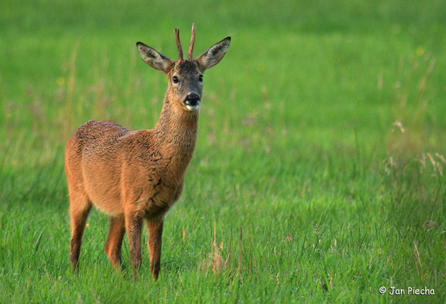 | Rehe können in seltenen Fällen ein Alter von 10-12 Jahren erreichen. Der körperliche Verfall beginnt aber schon mit rund 6 Jahren. Dieser alte Bock hat bereits ein zurückgebildetes Geweih, ein eingerissenes Ohr und einen durchhängenden Rücken. |