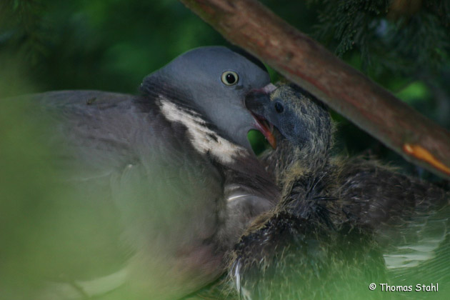 Tauben füttern ihre Jungen übrigens zunächst mit sogenannter "Kropfmilch", einem hochgewürgten, käseartigen Drüsensekret.