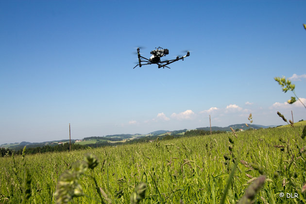 | In Zukunft können zur Kitzsuche möglicherweise auch verschiedene Sensoren und Kameras auf Computer- und GPS-gesteuerten "fliegenden Plattformen" eingesetzt werden. Diese Bild zeigt einen Prototyp bei Testflügen (Projektkonsortium Fa. ISA / DLR / TU München / Fa. CLAAS). |
