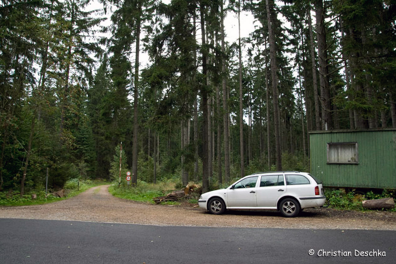 Fährt man von Aigen-Schlägl nach Oberhaag und dann in Richtung tschechischer Grenze, so kann man sein Auto ca. 200 m nach einem alten Zollhaus abstellen. Dort beginnen wir unsere Wanderung in die Bayerische Au.