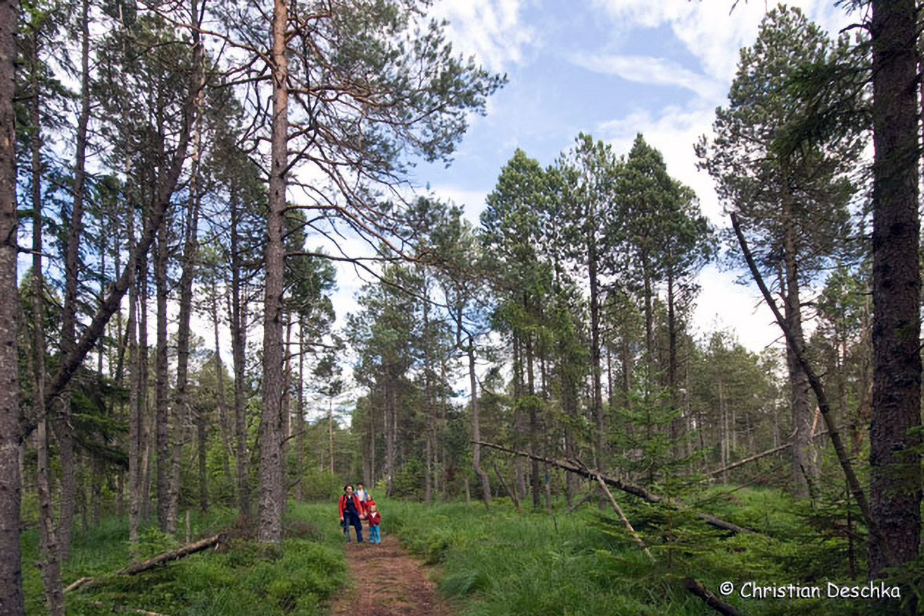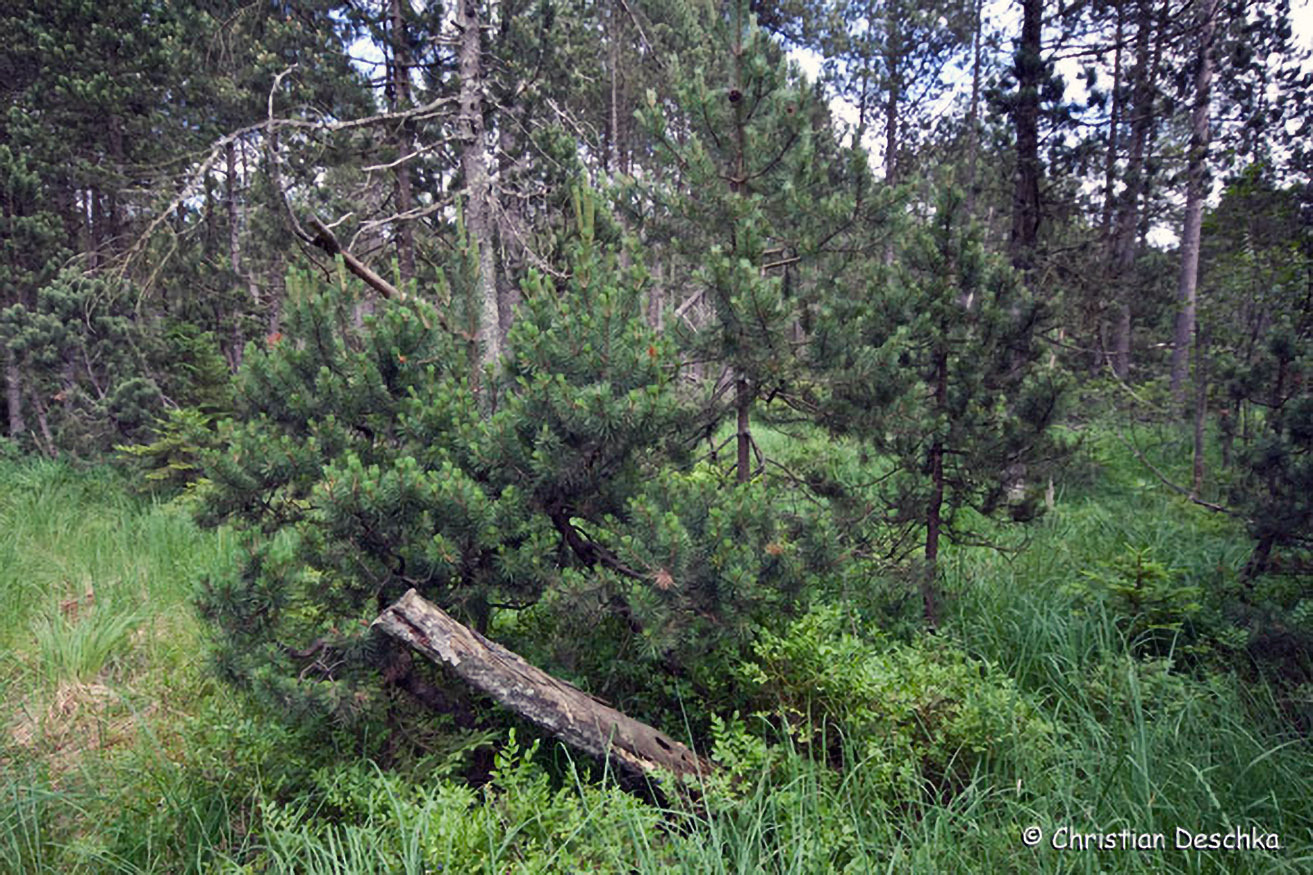 Die lichten Wälder im Bereich von Mooren sind (waren!) ein idealer Lebensraum für Auerhühner. Hier war der Abstand zwischen den Bäumen groß genug, um notfalls Auffliegen zu können.