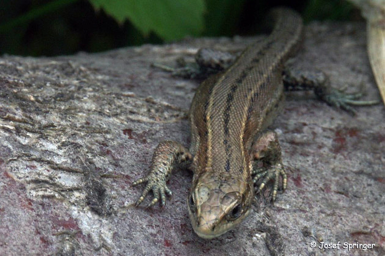 Und wo Insekten sind, gibt es auch Insektenjäger wie die Waldeidechse. Sie sonnt sich gerne auf liegenden Baumstämmen.