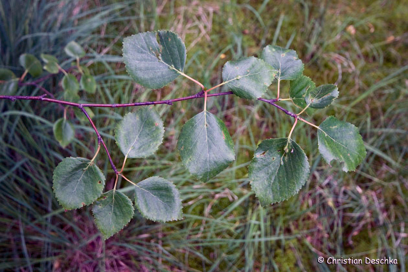 Die Blätter der Moorbirke sind eher eiförmig, jene der Hängebirke rautenförmig mit ausgezogener Spitze.