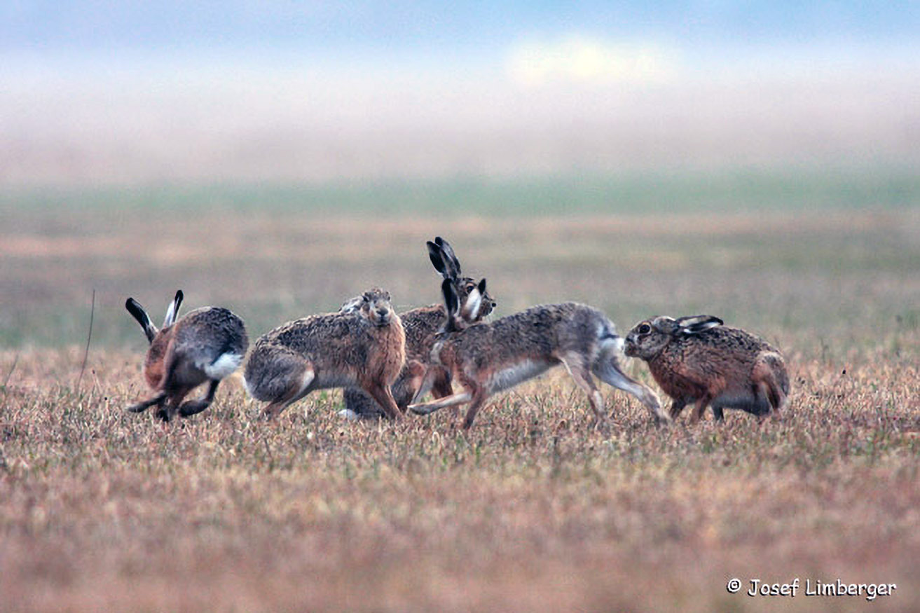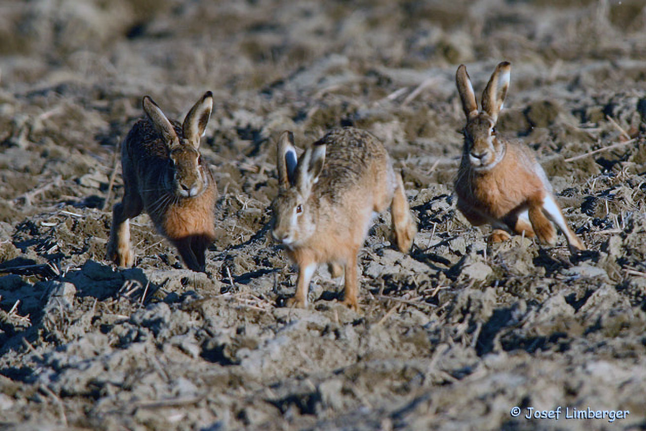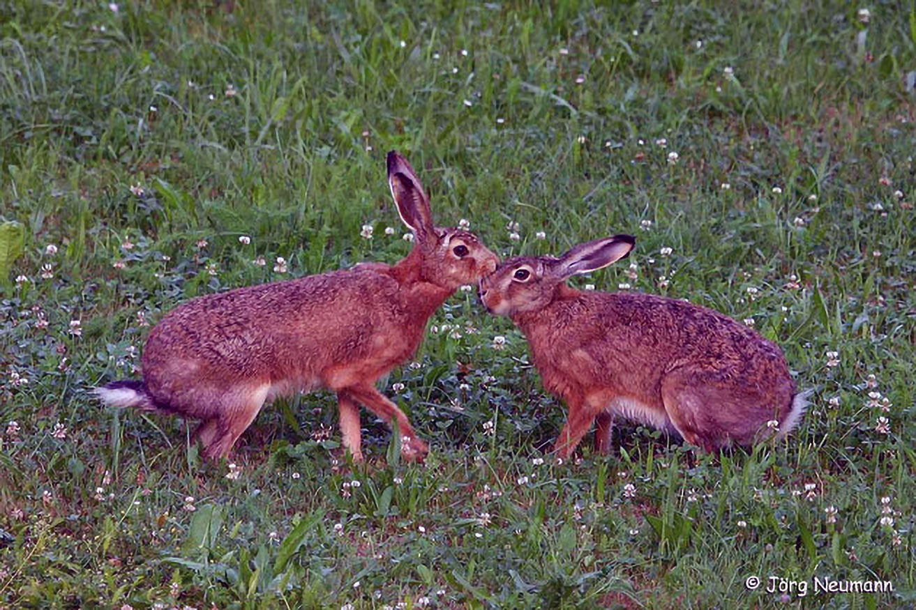 Bereits im Spätwinter werden Feldhasen unruhig und sind vermehrt tagaktiv. Hasen machen sich auf die Suche nach einer Häsin.