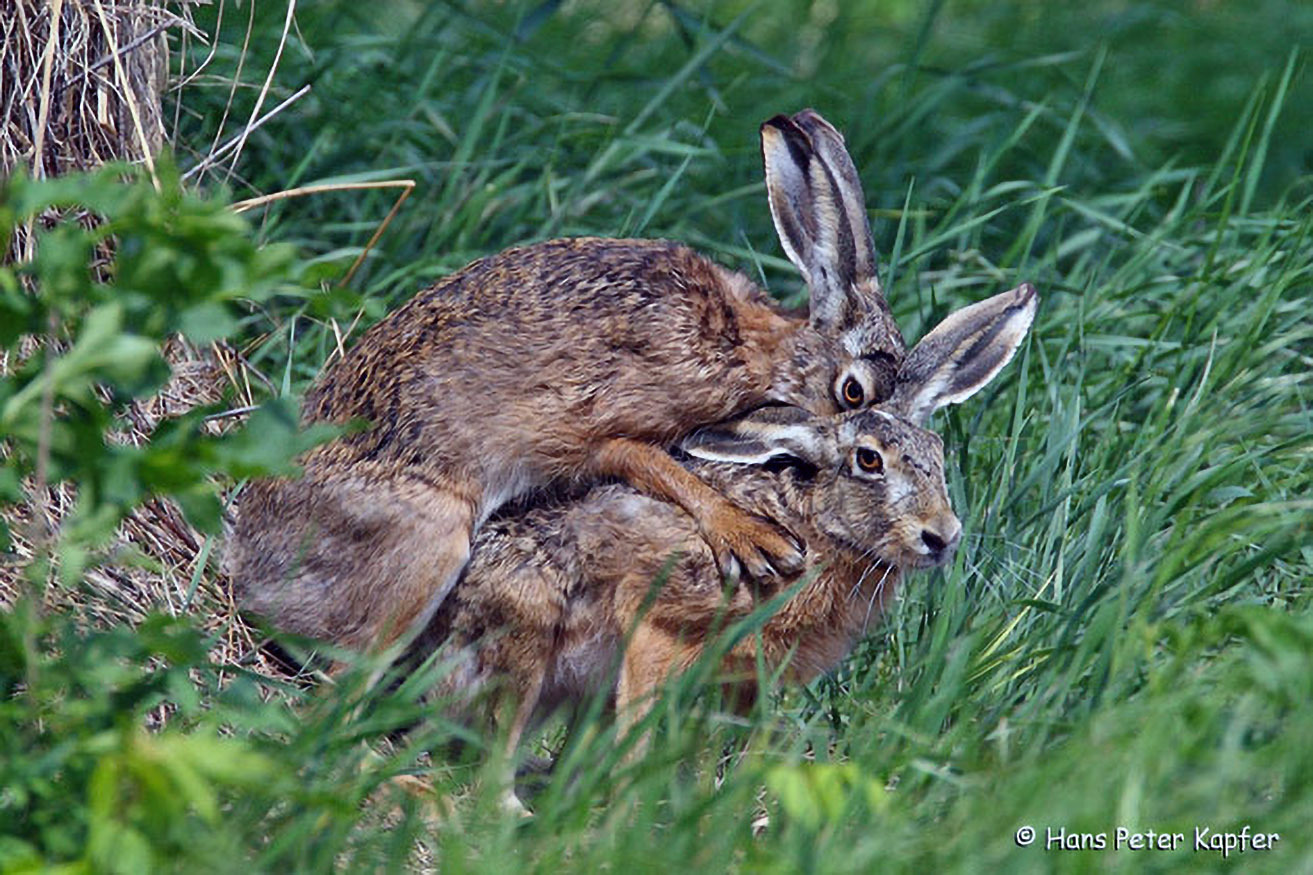 Die eigentliche Paarung dauert nur kurz. Eine Häsin paart sich mehrmals hintereinander.
