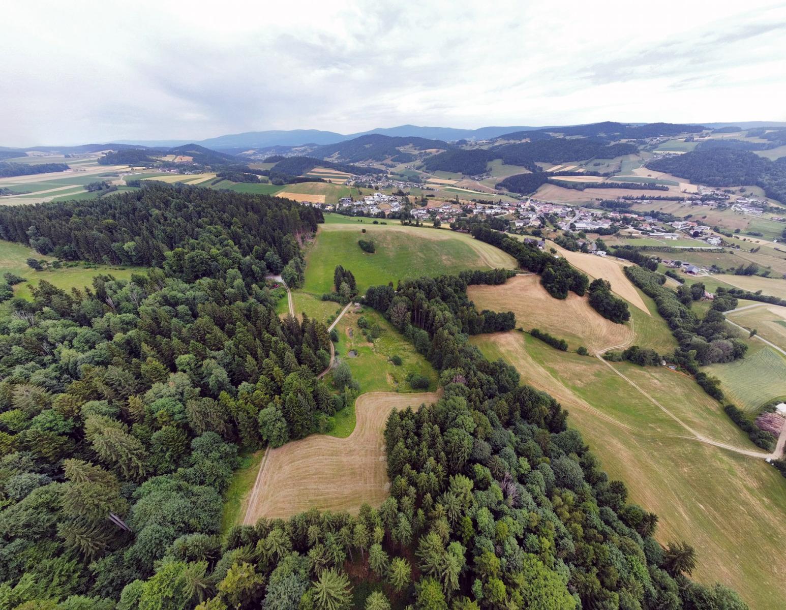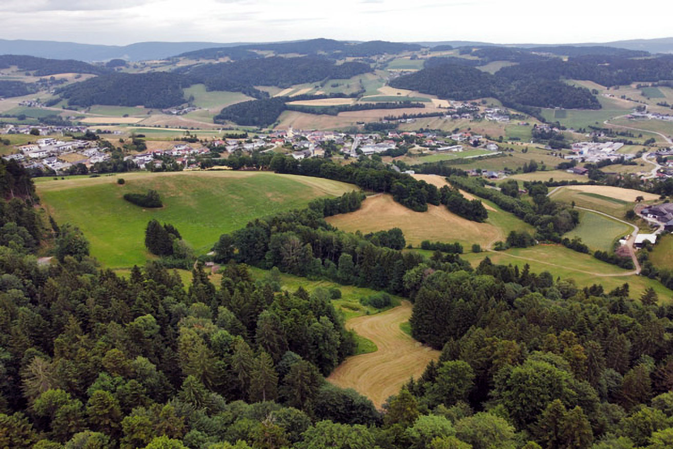 Rund 800 m südwestlich von Peilstein befindet sich eine malerische Waldwiese mit dem Flurnamen "Häuslin". Im Hintergrund sieht man die Ortschaft Peilstein, den Zwischenmühlrücken und den Böhmerwald sowie den Bayerischen Wald.