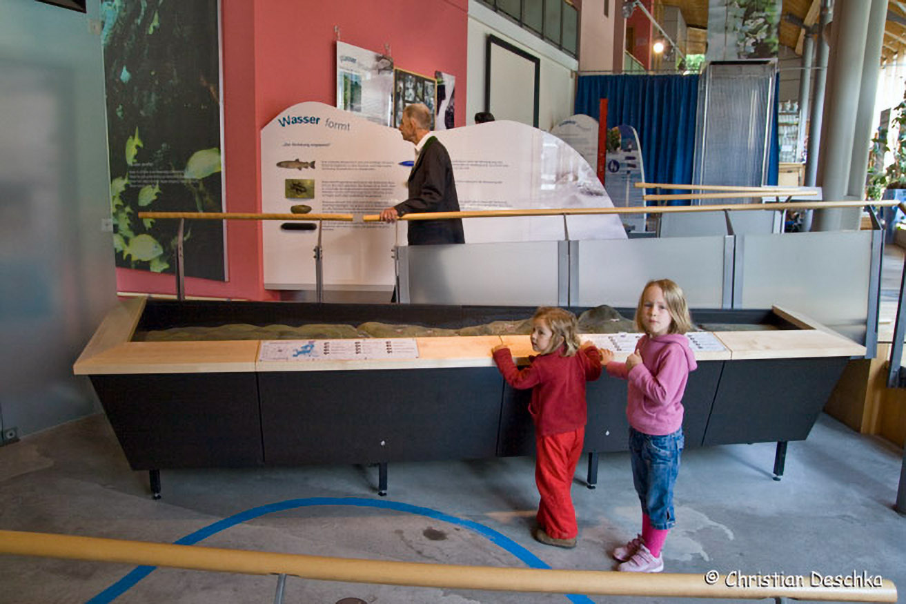 Im Inneren kann man sich z.B. anhand eines Landschaftsmodells einen Überblick über das Donautal und den Verlauf von Wanderwegen machen.