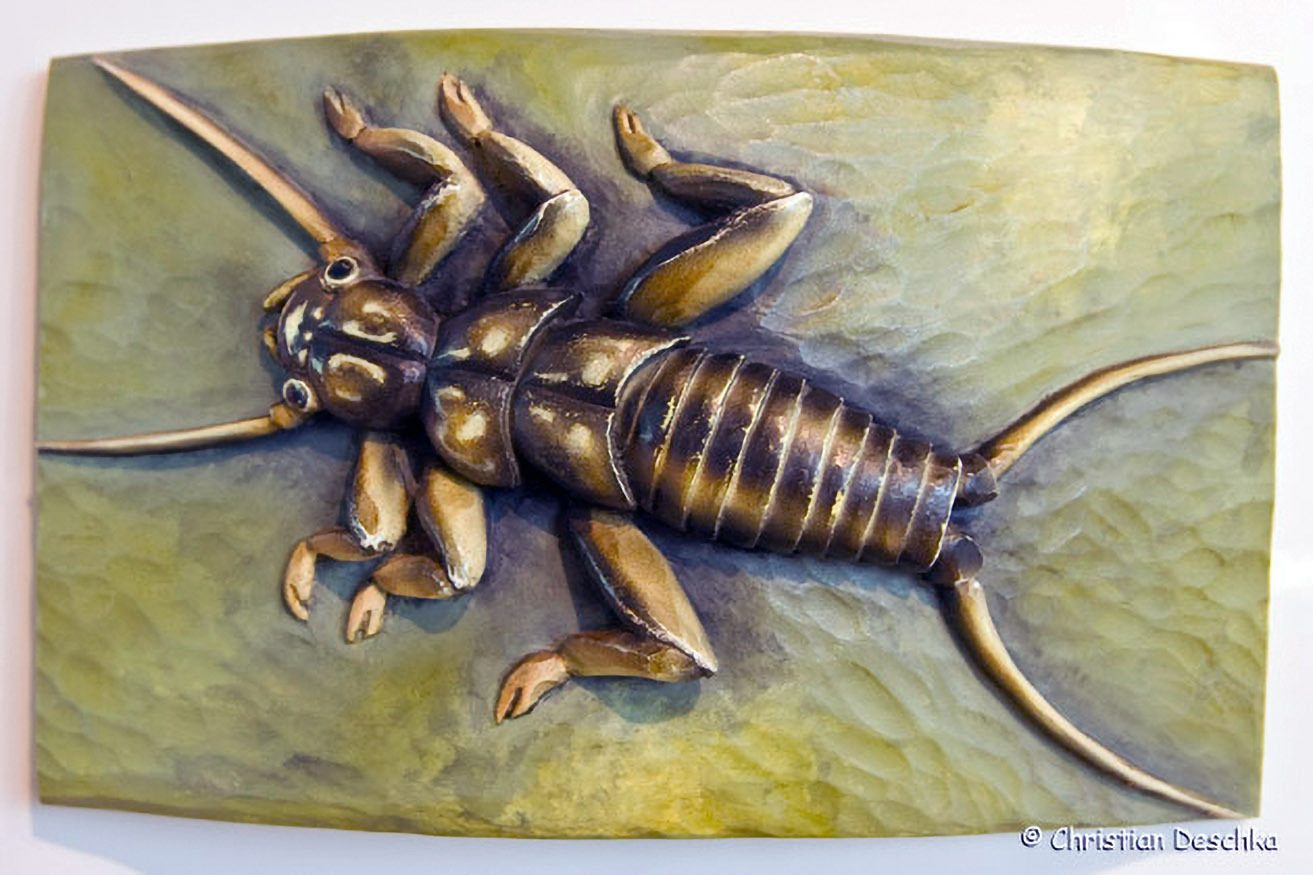 Besonders beeindruckend ist dieses Präparat eines unter Seerosen tauchenden Fischotters.