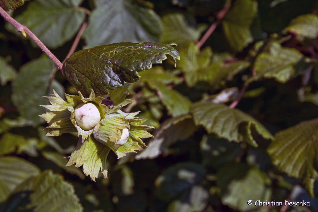 Auch die häufige Haselnuss ist recht bekannt. Neben den mehr oder weniger rundlichen Blättern kennt man vor allem die Nüsse, die anfangs grün, später braun sind. Sie sind bei Haselmaus, Eichhörnchen & Co sehr beliebt.
