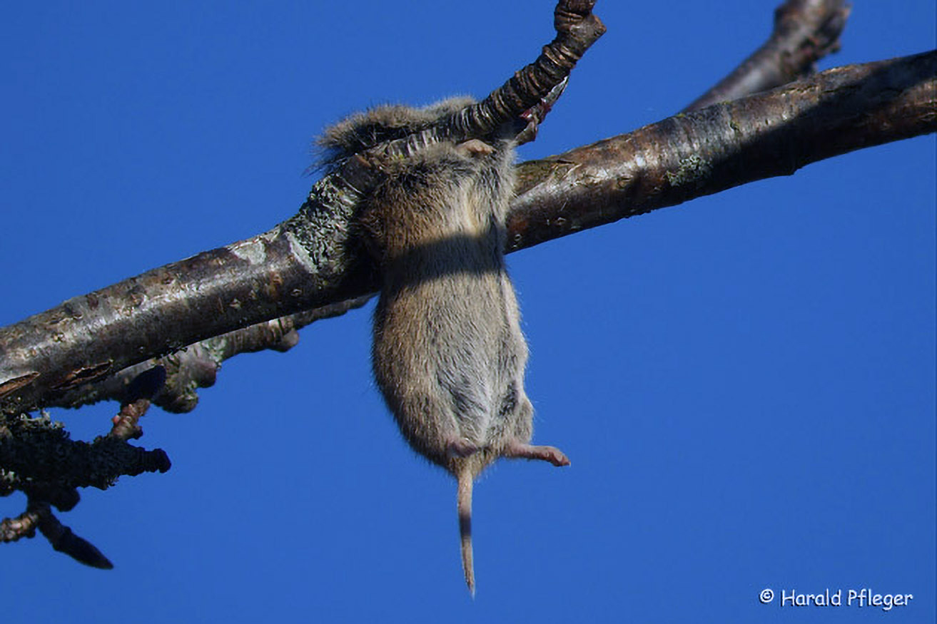 Die Haselmaus ist - wie der Siebenschläfer - ein zur Familie der Bilche gehörendes Nagetier, das seine Nahrung großteils auf Sträuchern sucht. Man kann dieses Tier im Spätherbst in Vogelnistkästen antreffen, in denen es sein Nest errichtet.
