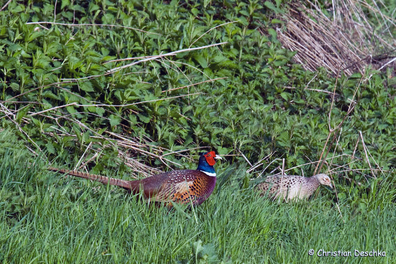 Dichte Hecken dienen dem Fasan als Fluchtmöglichkeit und Feindschutz vor dem Habicht, der gerne in deckungsreicher Landschaft jagt.