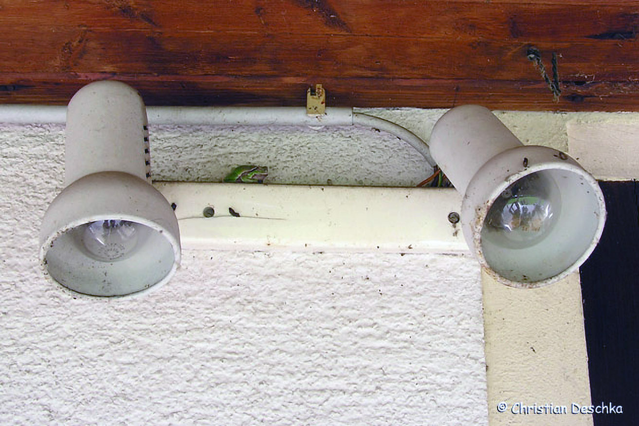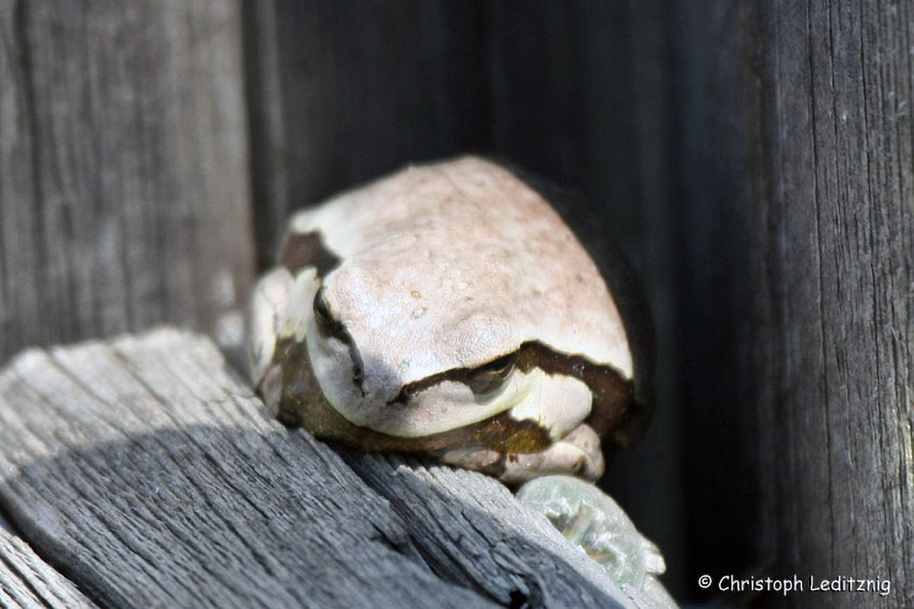 Da der Laubfrosch gerne Fliegen erbeutet, können wir uns über diesen Untermieter freuen.