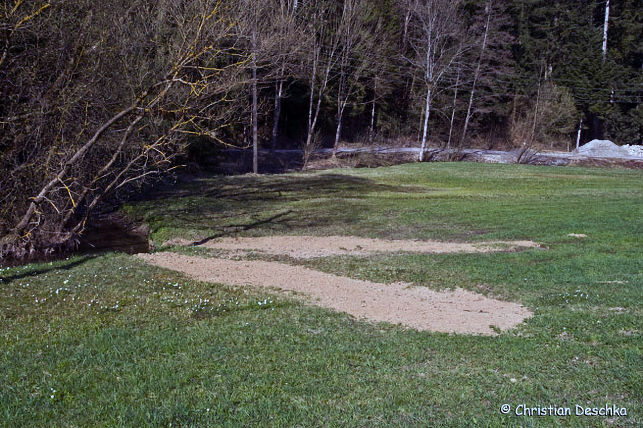 Gelegentlich lassen uns Landwirte auf ihren Grundstücken auch neue Tümpel anlegen. Diese werden so gestaltet, dass sie insbesondere den besonders stark gefährdeten Arten Gelbbauchunke und Laubfrosch zusagen.