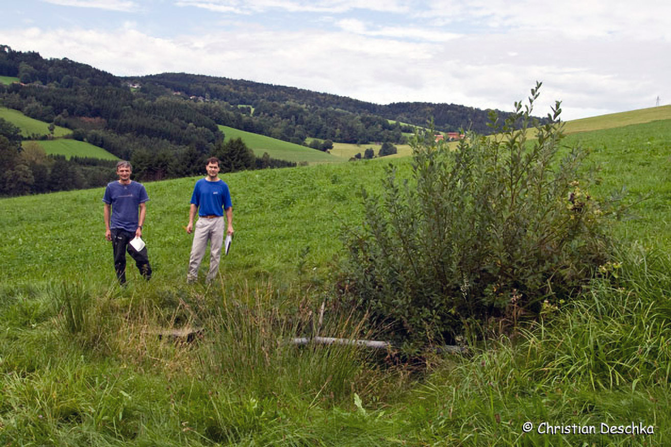 Wo wir auf aufgeschlossene Grundstücksbesitzer treffen, revitalisieren wir diesen für die Kulturlandschaft des oberen Mühlviertels typischen Gewässertyp. Die Finanzierung übernimmt - nach Begutachtung durch den Naturschutzbeauftragten (re.) - das Land OÖ.