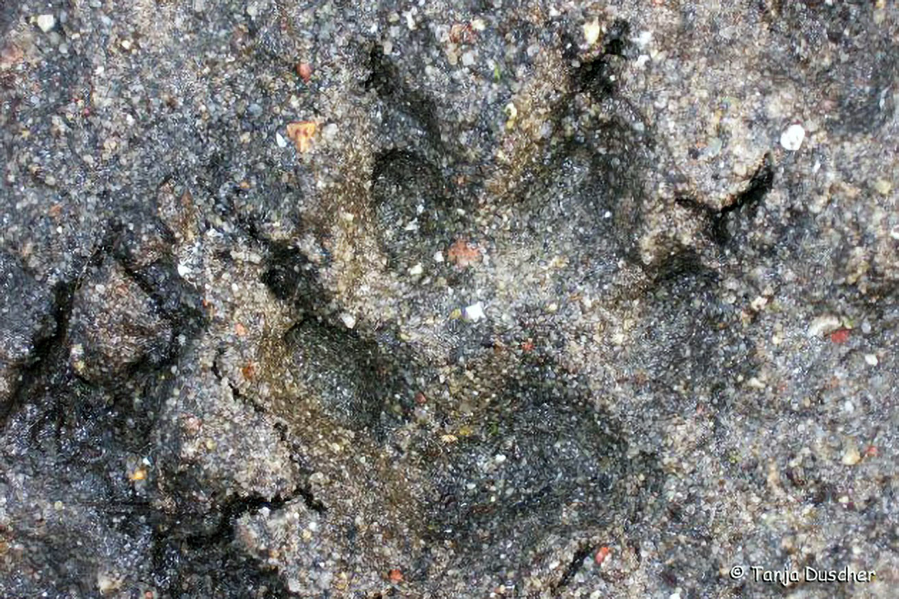 Möglicherweise hast du eine überraschende Begegnung mit einem fuchsgroßen, dir unbekannten Tier. Dann könnte es sich wie hier um einen Marderhund handeln, von dem gelegentlich Exemplare bei uns auftauchen.