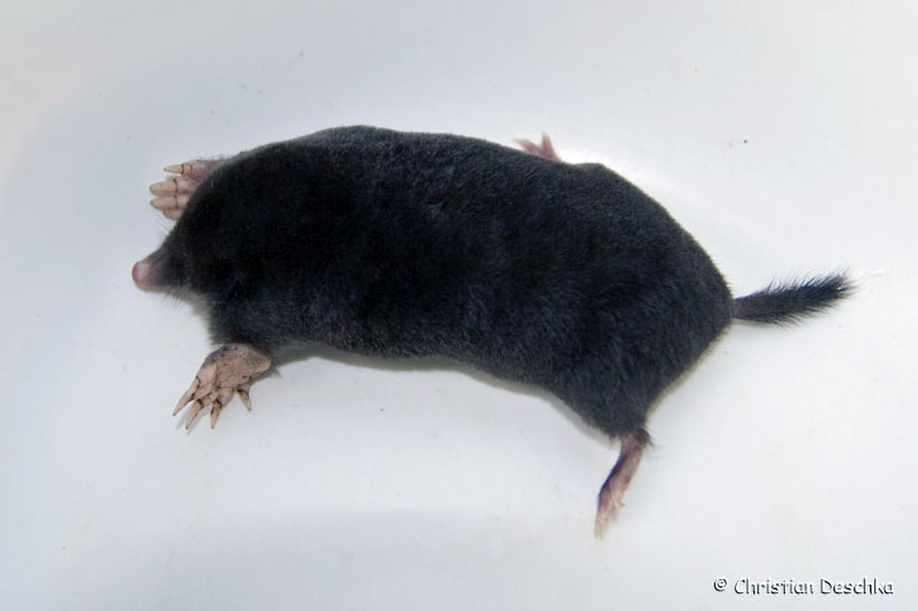 Der Maulwurf ist an die unterirdische, grabende Lebensweise angepasst: Grabschaufelartige Hände, "Tastschnauze" mit Tasthaaren, weiches Fell ohne Strich, im Fell verborgene Augen, spärlich behaarter Schwanz mit Tasthaaren, ...