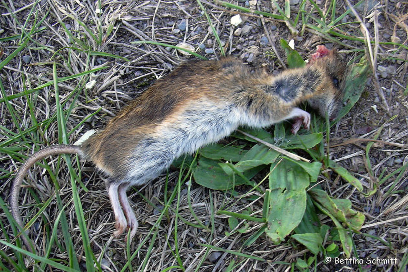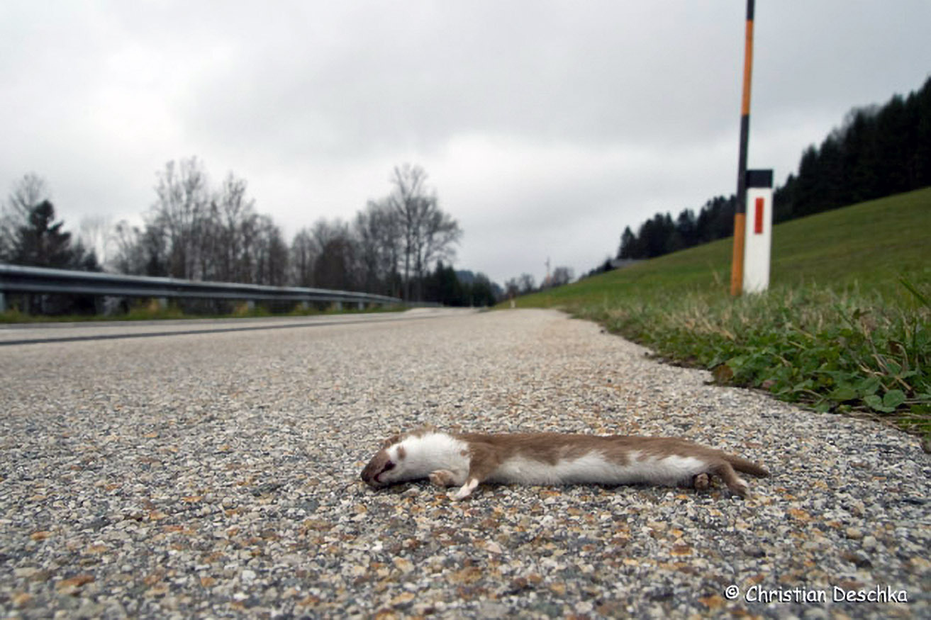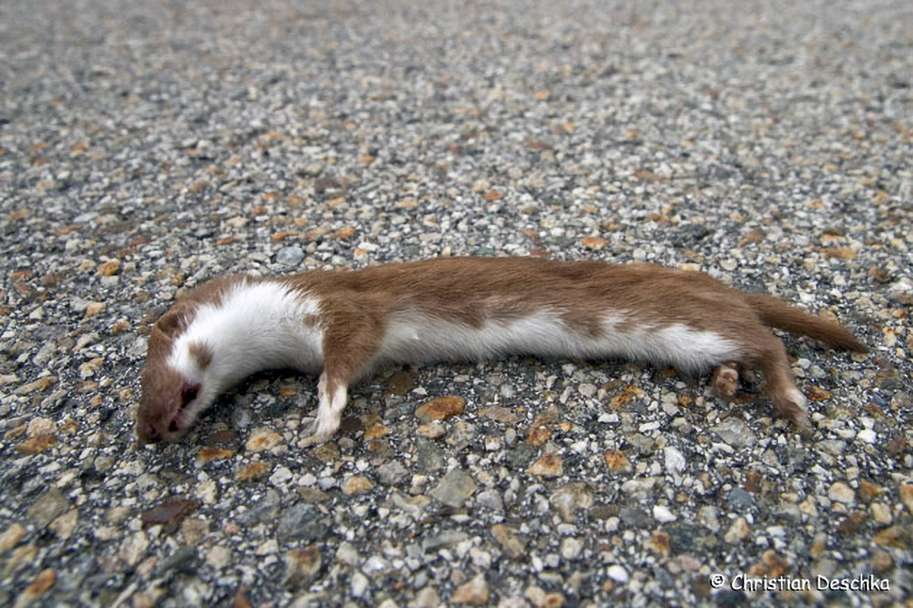 Gelegentlich kommt das Mauswiesel auch beim Überqueren von Straßen ums Leben.