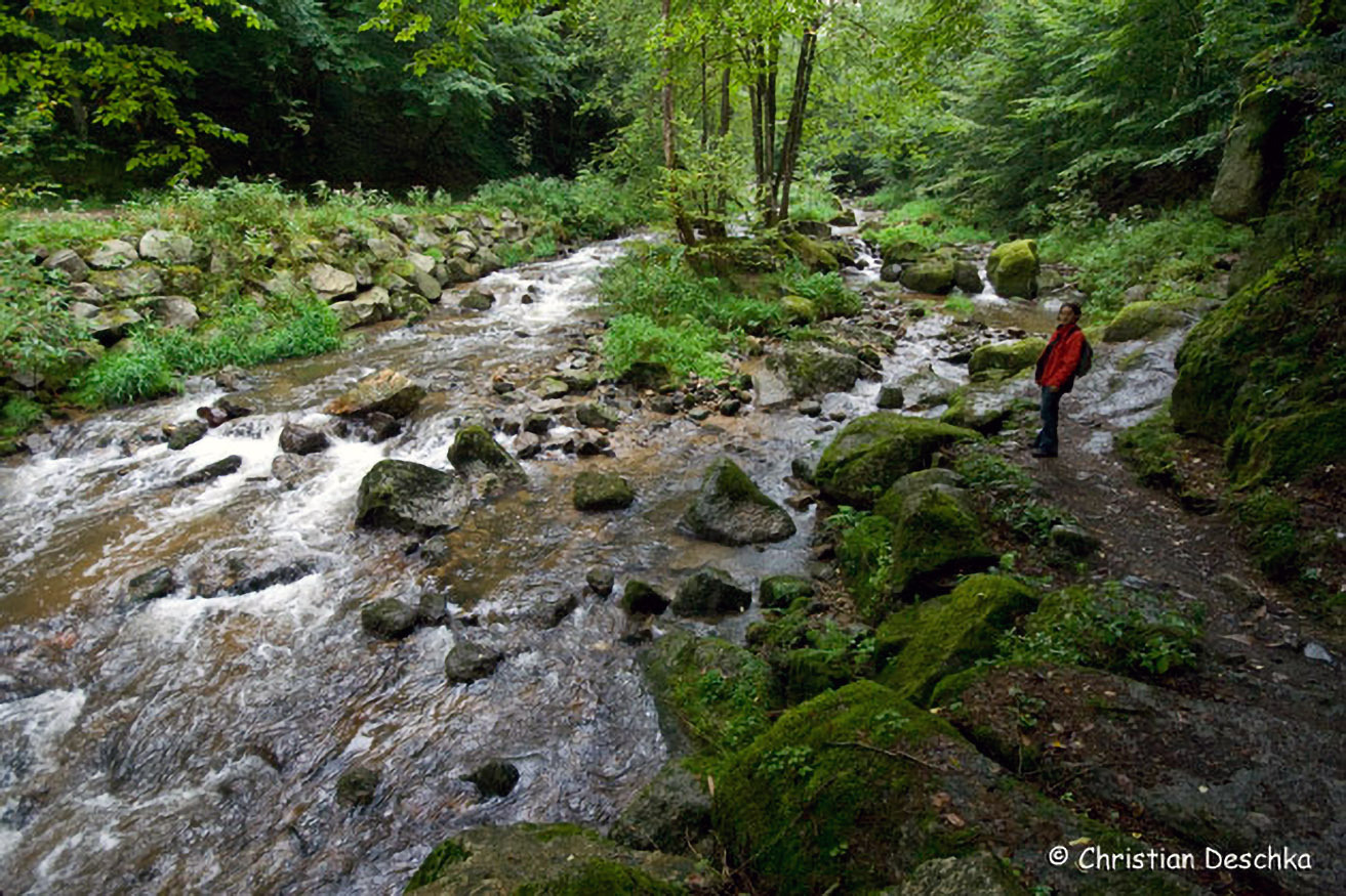 Wir setzen die Wanderung am immer stärker rauschenden Bach fort.