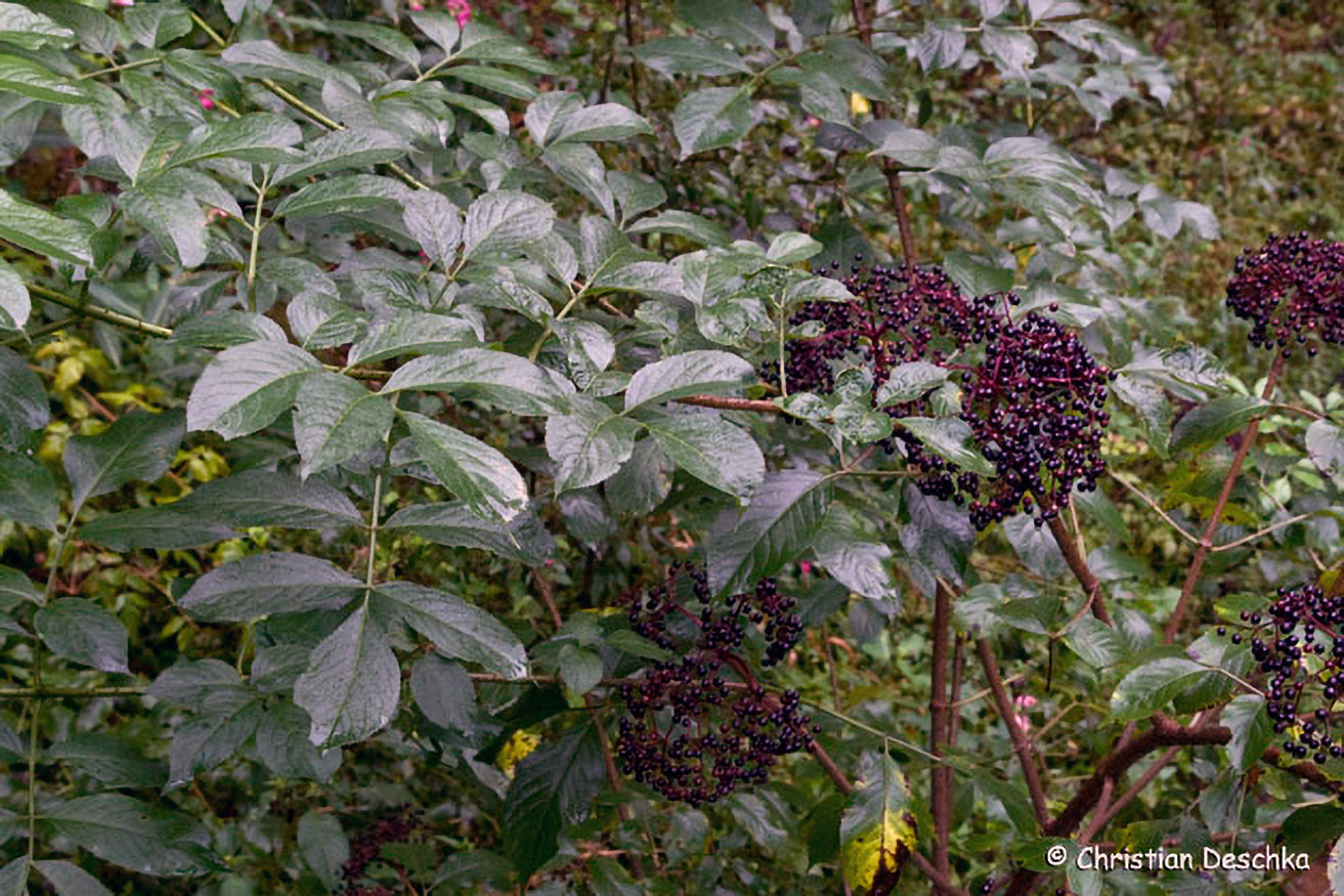 Umgestürzte Bäume schaffen helle Lücken im Wald, auf denen beispielsweise der "Schwarze Holunder" vorkommt.