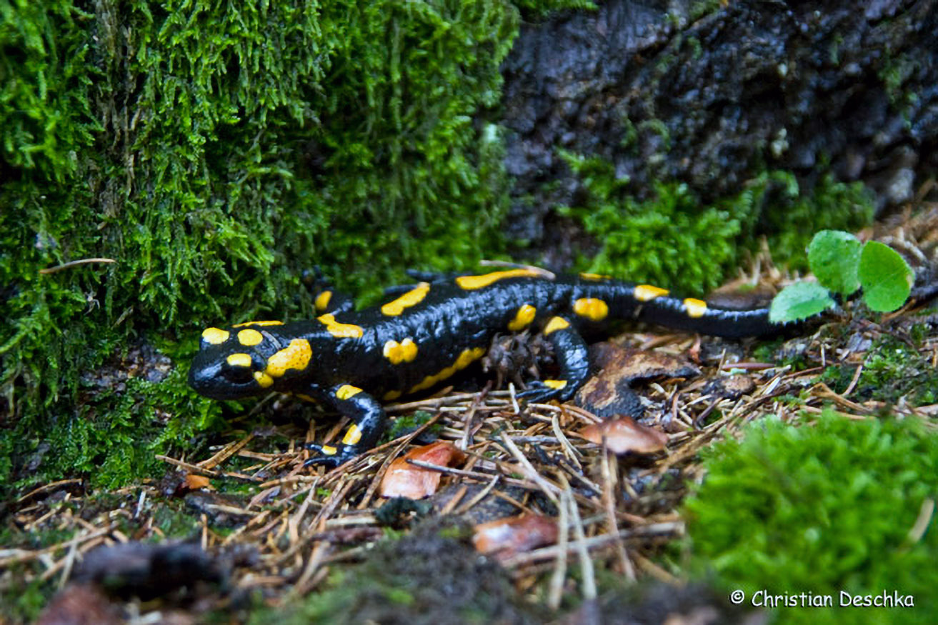 Am faszinierendsten sind aber wohl die Feuersalamander. Eigentlich sind sie eher nachtaktiv. Insbesondere während und nach Regenfällen kann man sie aber auch tagsüber antreffen. Die gelben Flecken auf schwarzem Grund machen sie unverkennbar.