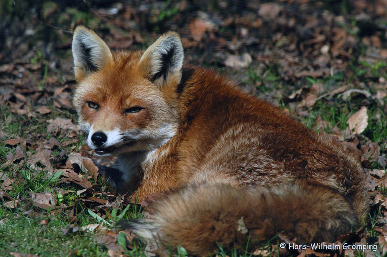 Der anpassungsfähige Rotfuchs kommt mit unserer Kulturlandschaft ausgezeichnet zurecht. Er erreicht als Kulturfolger hohe Dichten. Nur wenn er sich sicher fühlt, liegt er tagsüber außerhalb des Baues in der Sonne.
