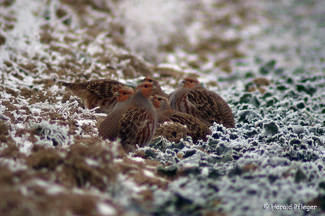 Auch das Rebhuhn lebt in der offenen Landschaft. Es litt stark unter der Intensivierung in der Landwirtschaft. Helfen können ihm heute vor allem Landwirte und Jäger durch Anlage von Hecken und Brachen, Einrichtung von Spätmähwiesen, ...