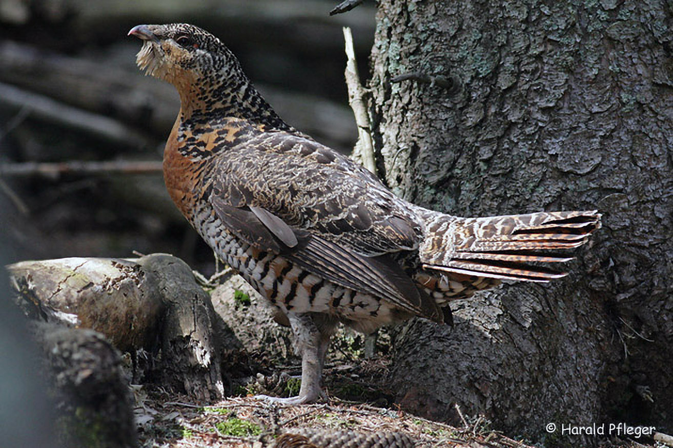 Das Haselhuhn ist ein versteckt lebendes Waldhuhn in der Größe eines Rebhuhns. Es wurde durch Lebensraumzersplitterung und -strukturänderung auf wenige Restvorkommen in zusammenhängenden, naturnahen Waldgebieten zurückgedrängt.