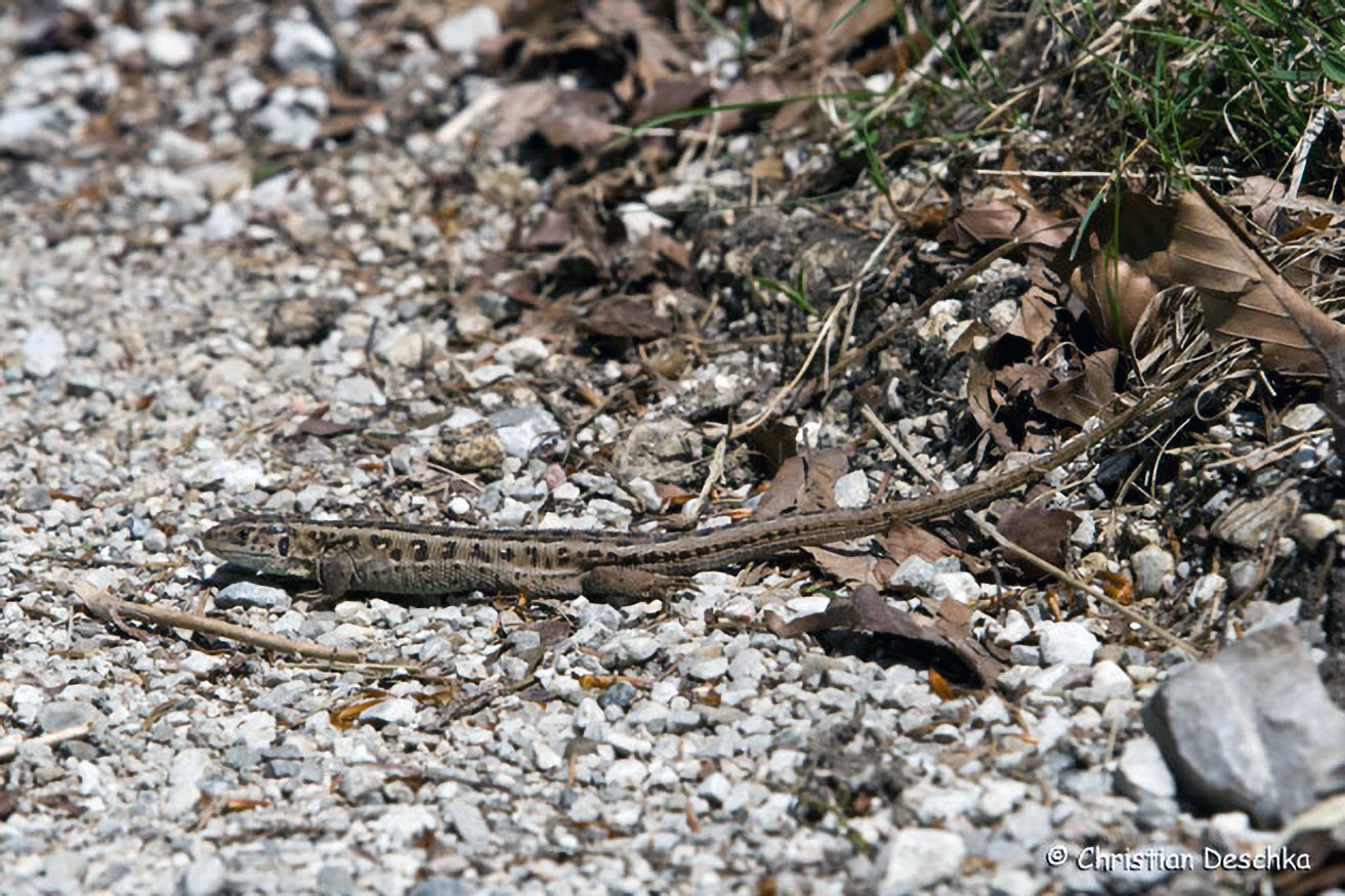 Die Zauneidechse ist unsere häufigste und am weitesten verbreitete Eidechsenart. Sie kommt an sonnigen Waldrändern, in Sand- und Schottergruben, auf Friedhöfen, in Steingärten etc. vor.