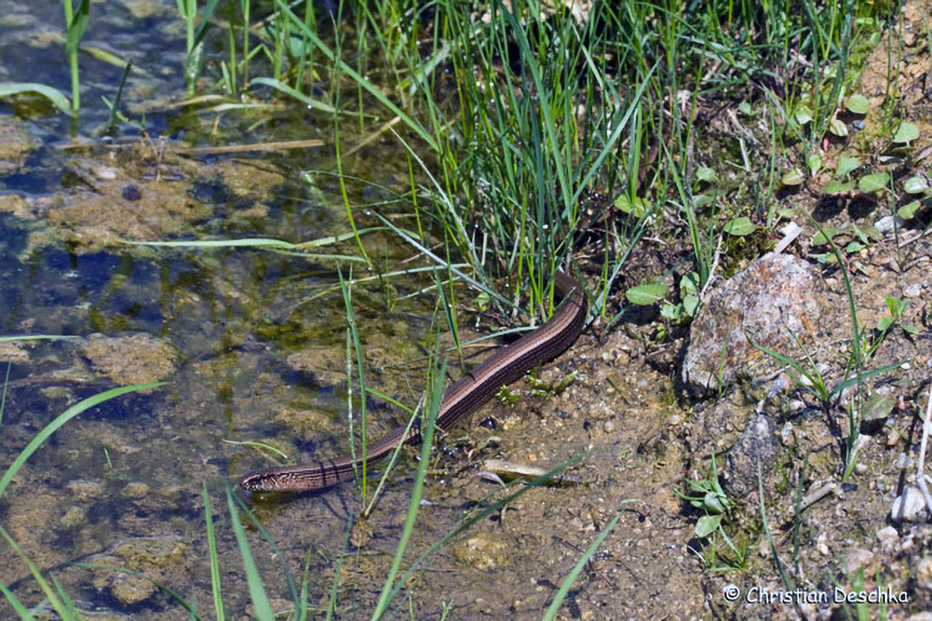 Die Blindschleiche ist eine beinlose Eidechse. Sie bevorzugt deckungs- und strukturreiche Lebensräume mit feuchten Böden. Man kann sie im Garten genauso antreffen wie auf Äckern, in Wiesen und im Wald.