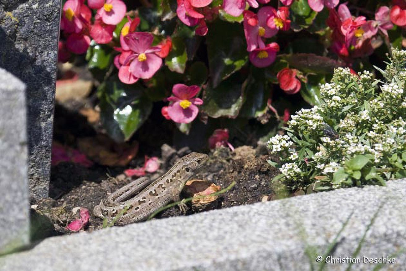 Friedhöfe stellen mit Grabsteinen, Kieswegen und schütter bepflanztem Erdboden ebenfalls attraktive Zauneidechsen-Lebensräume in der Mühlviertler Kulturlandschaft dar.