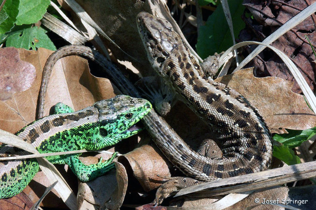 Auch bei den Smaragdeidechsen ist ein Biss des Männchens in die Flanken des Weibchens fixer Teil des Vorspiels.