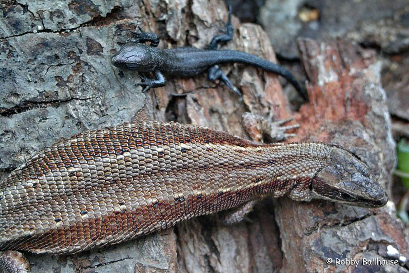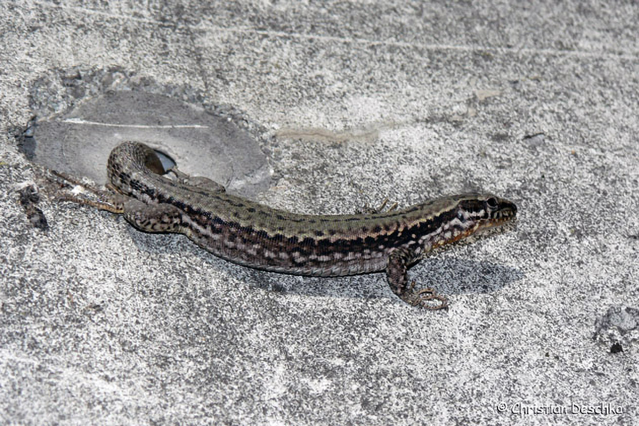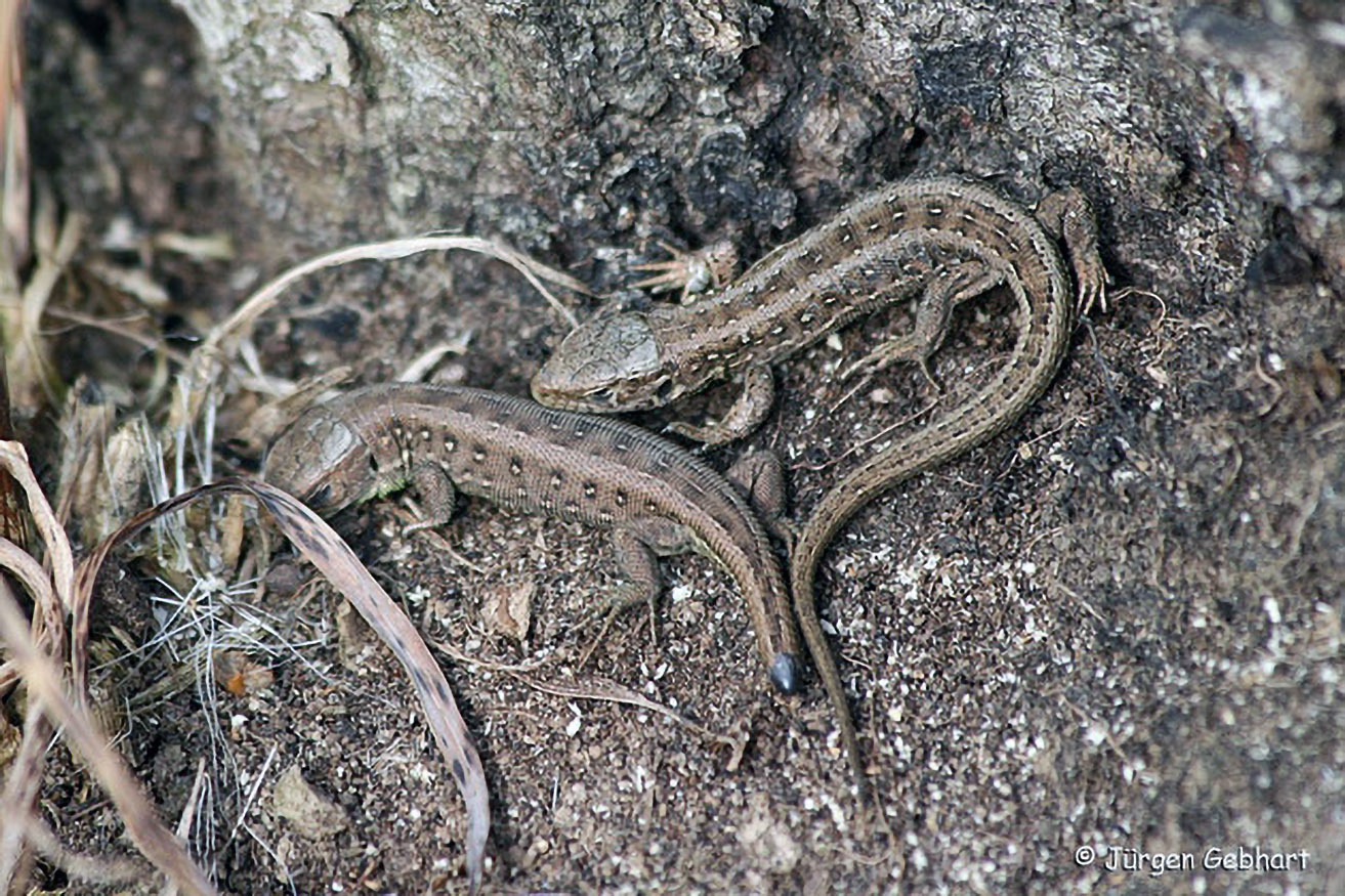 Eidechsen können bei Gefahr einmal im Leben ihren Schwanz abwerfen (siehe linkes Tier). Er wächst wieder nach, ist aber dann meist deutlich kürzer und weniger gezeichnet.