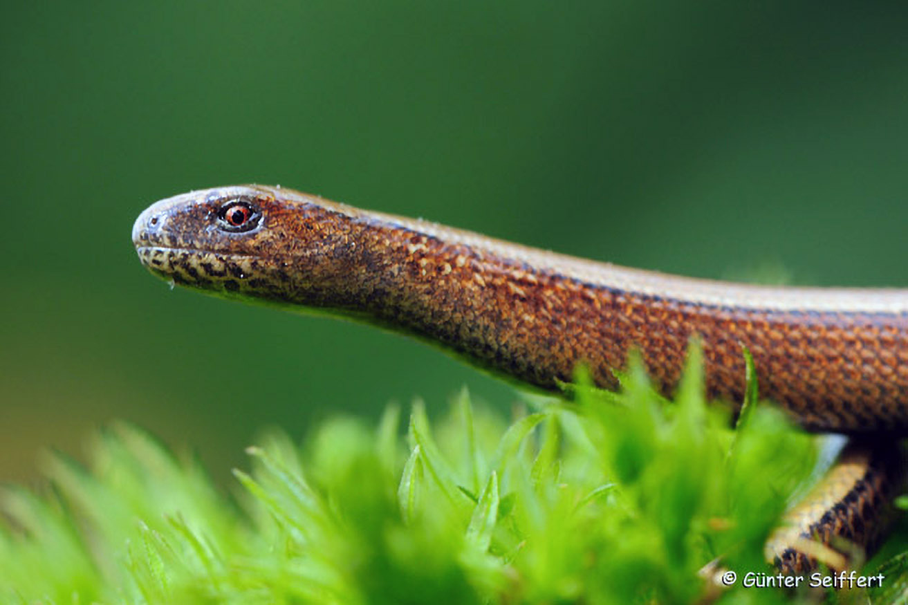 Im Unterschied zu Schlangen weist die Blindschleiche bewegliche Augenlider auf.