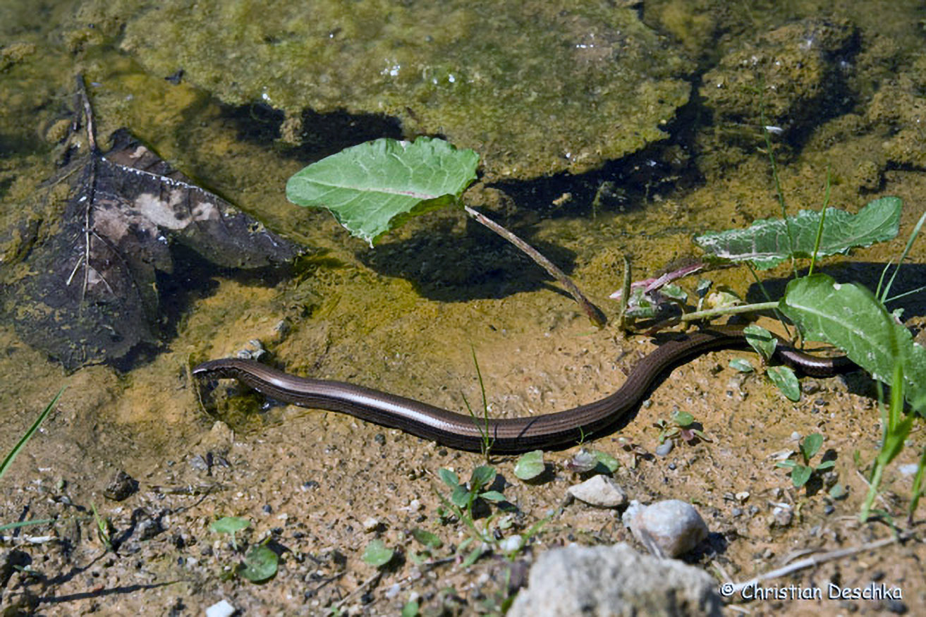 Ins Wasser geht sie aber nur selten. Beim Schwimmen fällt auf, dass die Blindschleiche einen steiferen Körper als die gelenkigen Schlangen haben.