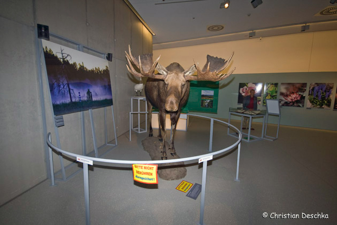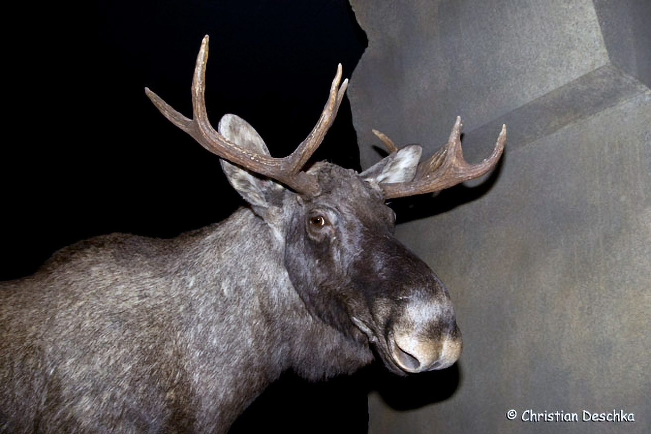 Der Elch ist nicht nur unser größtes Huftier, sondern sogar die größte Hirschart weltweit. Er kommt im nördlichen Mühlviertel als gelegentlicher Gast aus Südböhmen vor. Das hier ausgestellte Exemplar verendete im Gemeindegebiet von Haslach.