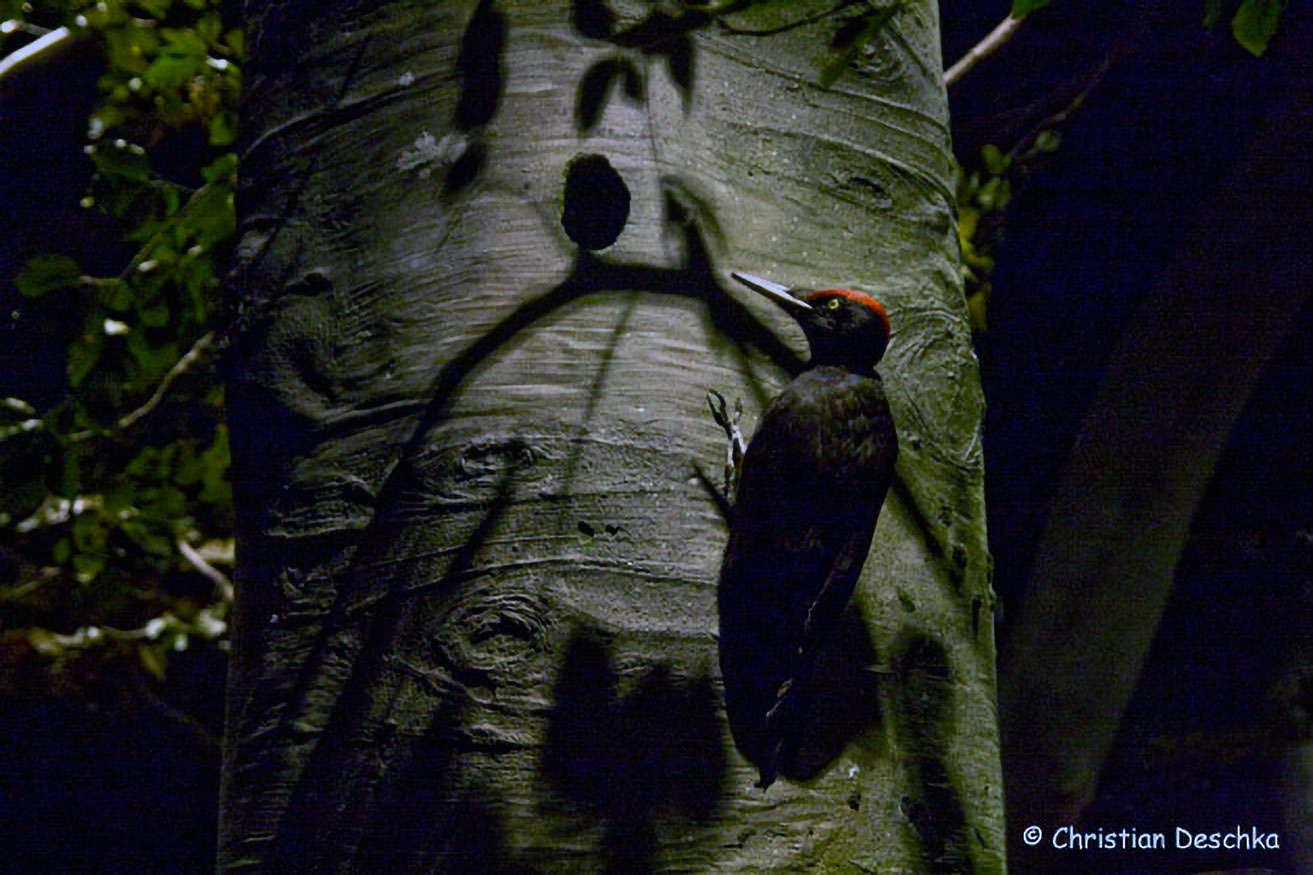 Besonders beeindruckend ist die Nachbildung eines Buchenwaldes und seiner Bewohner. Hier sieht man einen Schwarzspecht vor seiner Bruthöhle.