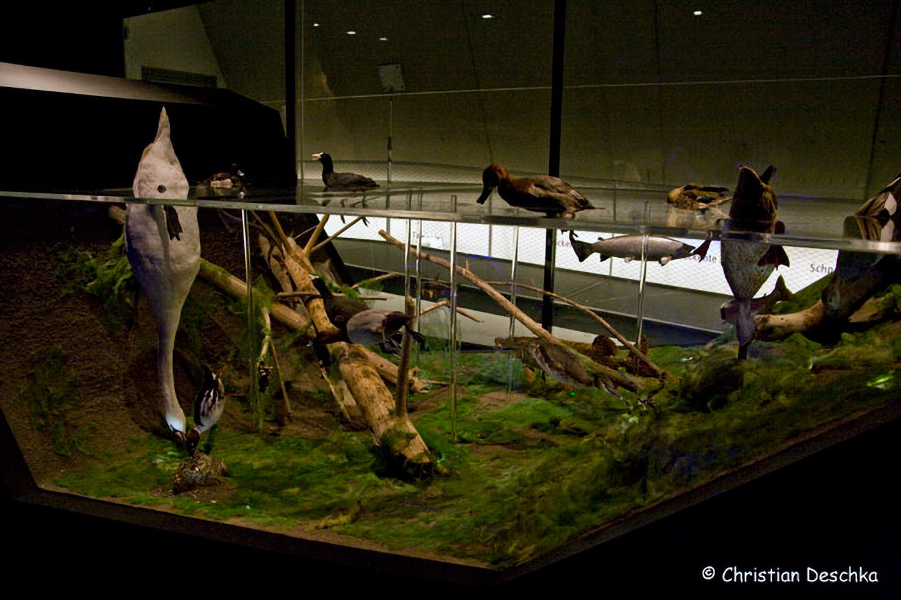 Mit diesem gelungenen Diorama wird dem Besucher der Lebensraum See nähergebracht. Derartige Einblicke unter den Wasserspiegel bekommt man in freier Natur kaum.