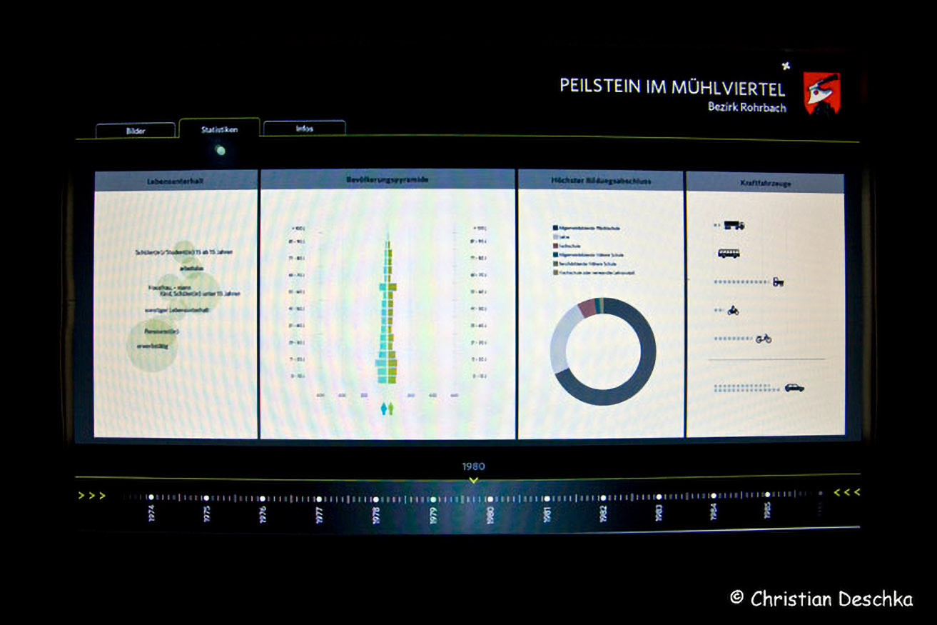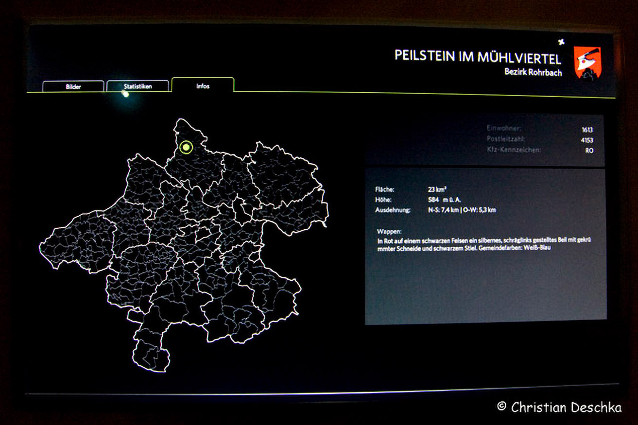 Zum Schluss ist noch ein kurzer Abstecher in den Bereich "OÖ Interaktiv" sehr empfehlenswert. Hier kann man auf einer begehbaren OÖ-Karte einen Marker abstellen und bekommt anschließend am Terminal Infos zu diesem Punkt.