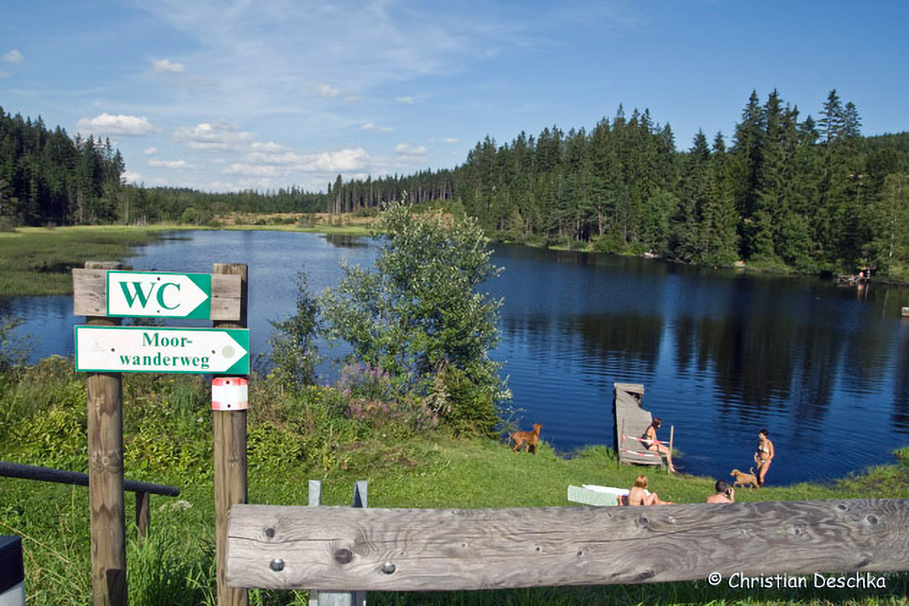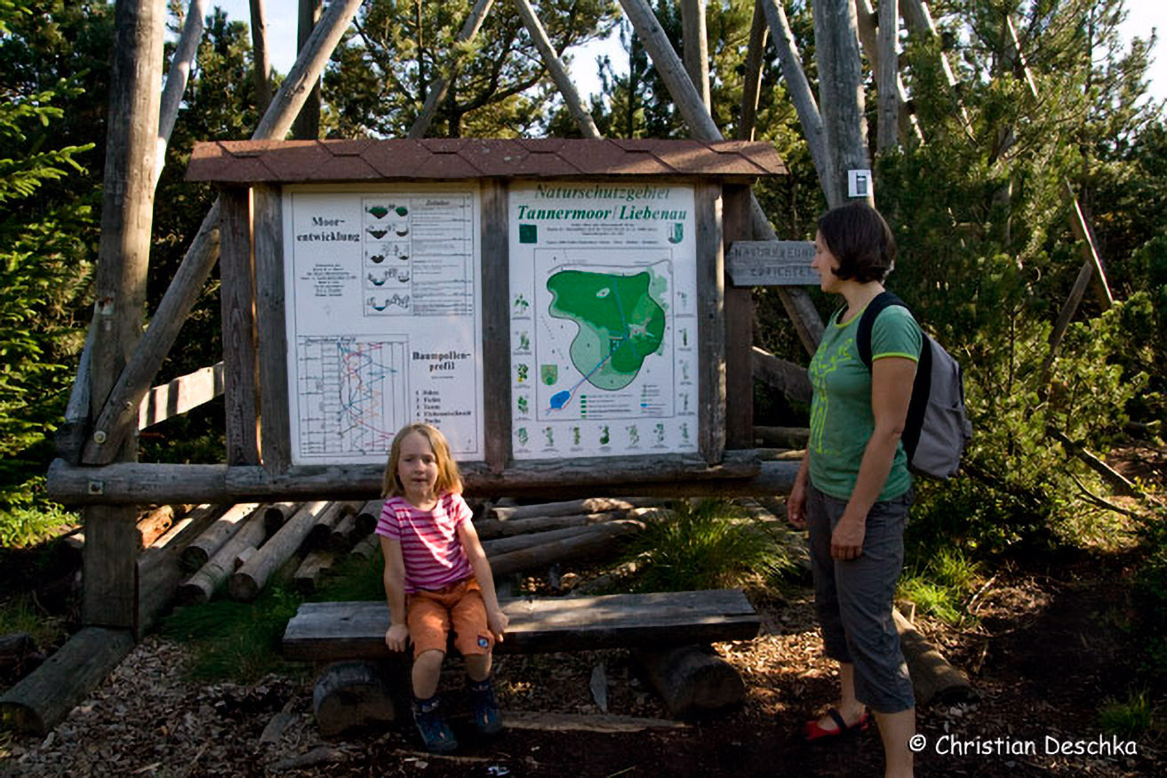 Man kann sein Auto gleich daneben auf einem Parkplatz abstellen. Das Tannermoor ist übrigens auf dem umliegenden Straßennetz bestens beschildert.