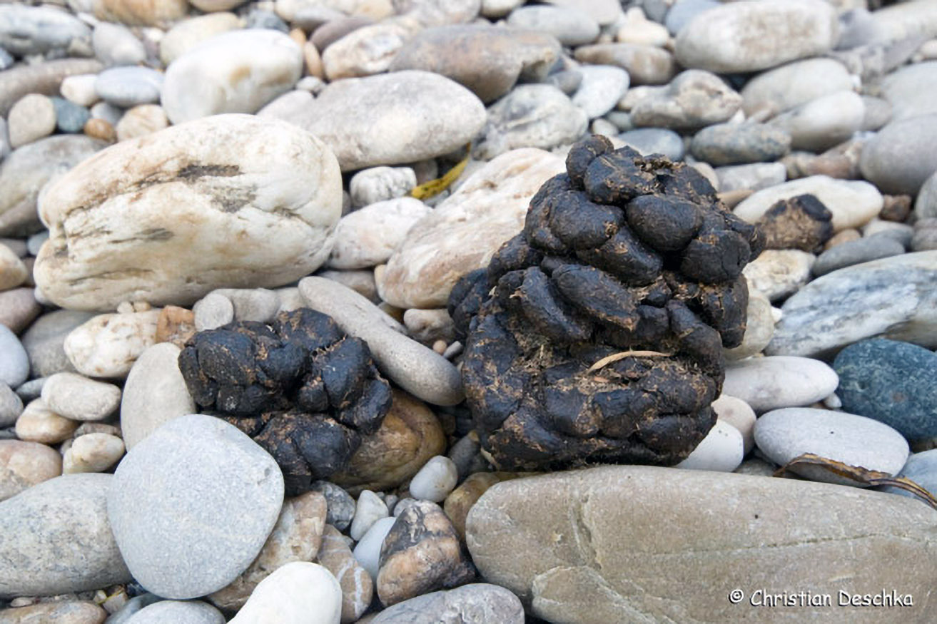 Der Kot ist regelmäßig auf markanten Steinen anzutreffen. Besonders gerne markiert der Otter unter Brücken. Die Losung riecht auffällig nach Fisch und kann dadurch leicht erkannt werden.