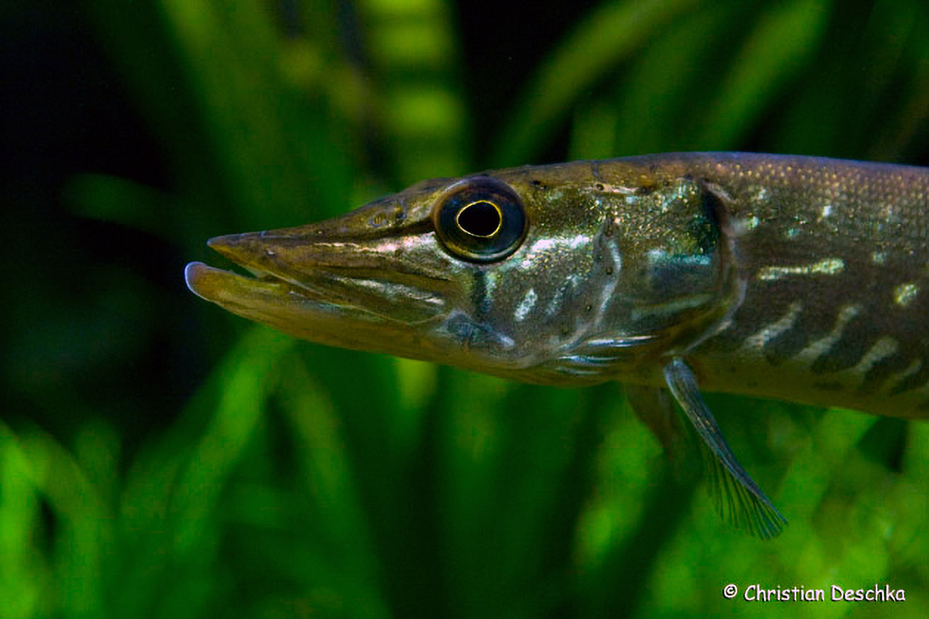 Besonders beeindruckend ist der Hecht. Seine weit nach hinten verlagerte Rücken- und seine Afterflosse ermöglichen einen "Raketenstart" dieses Raubfisches aus der Ufervegetation von Flüssen und Seen.