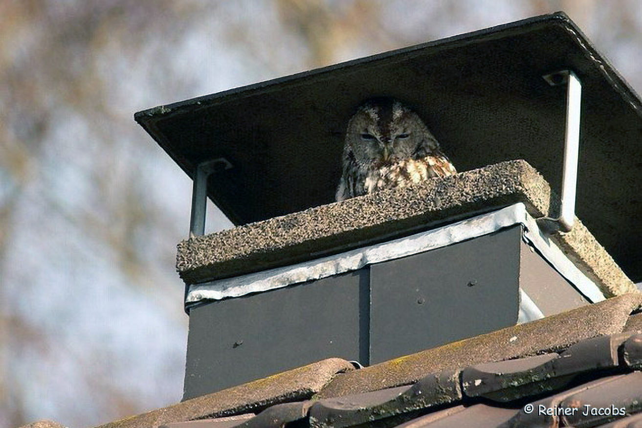 Auf Rauchfängen kann man mit etwas Glück auch einen anderen Vogel beobachten, der typischerweise Baumhöhlen bewohnt - den Waldkauz. Auch er gelangt manchmal in den Kamin. Selbst Bruten wurden dort schon beobachtet.