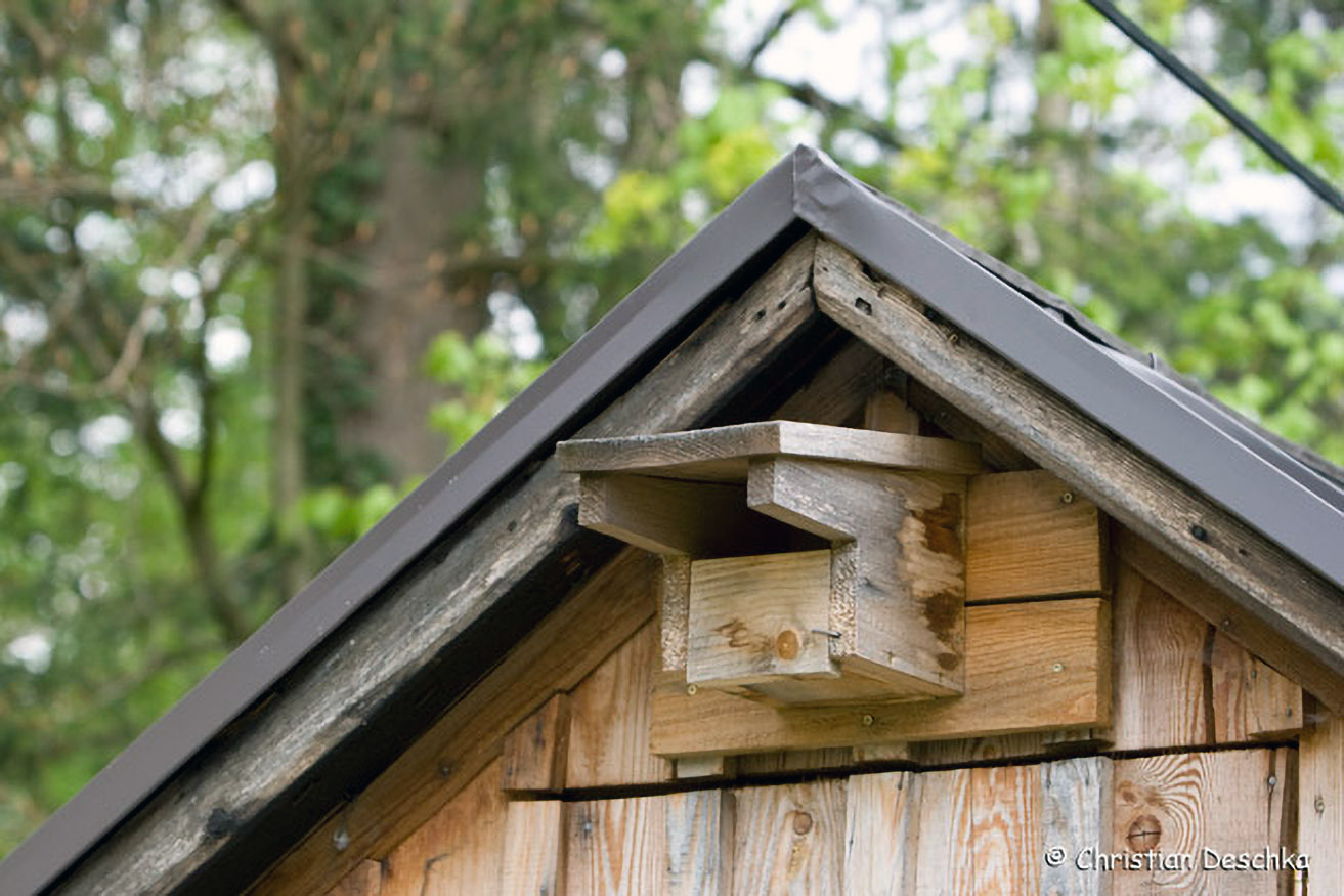Durch die Anbringung von Nistkästen an der Innenseite von Einflugöffnungen kann man den Bruterfolg dieser seltenen Eulenart erhöhen.
