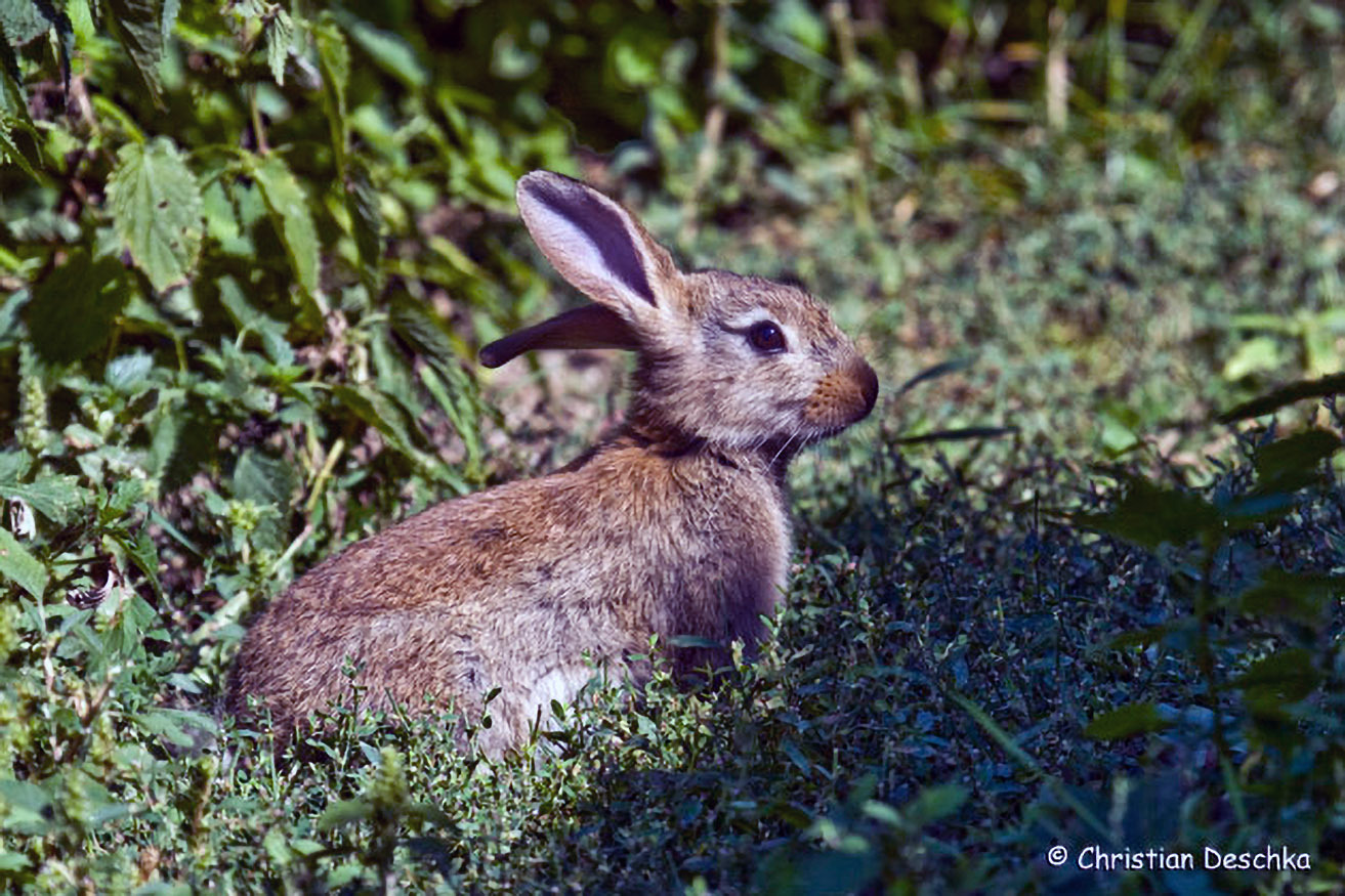 Ihr Leben spielt sich im näheren Umkreis um die Baue ab. Hier sehen wir ein in der Sonne dösendes Kaninchen.